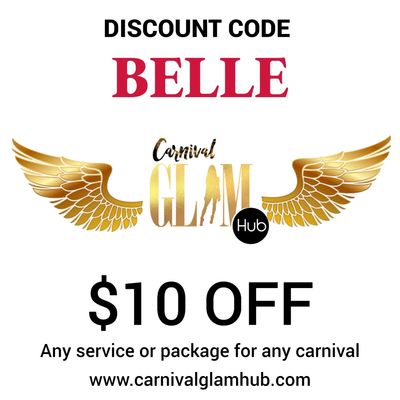 Use my Carnival Glam Hub Promotional Code BELLE when you purchase any service or package online to save $10 OFF your booking.